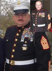 Look Closely at the uniform. This is the Round Marine. Same Seal trident/EOD combination, same placement. The ribbon rack is the same. This is the same individual, minus his glasses. He has lost some weight around the third and fourth chins though. He must be doing P90X or insanity. Getting fit for next years Stolen Valor Tourney no doubt. Best of luck you fat walrus poser fuck. We’re rooting for you.
