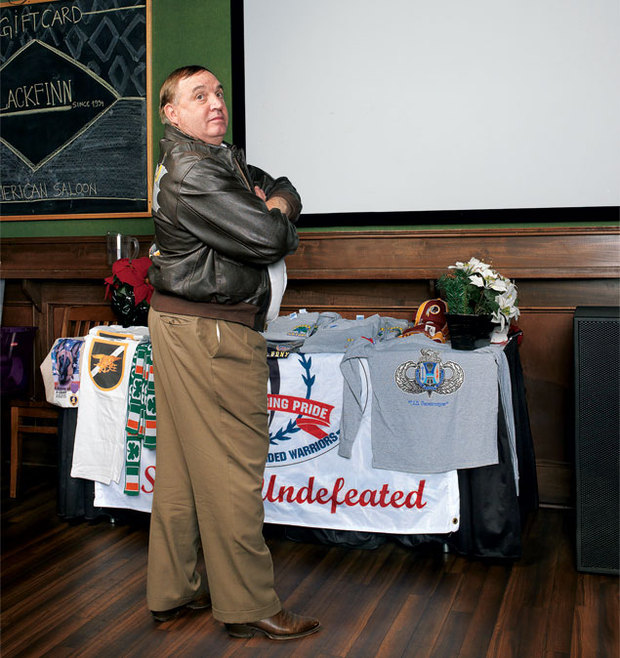 He claims that he went back on active duty during the war against terror, that he was promoted to a one-star general, that he was Special Forces and that he was wounded in an IED blast, but we can’t find anything to support any of that.