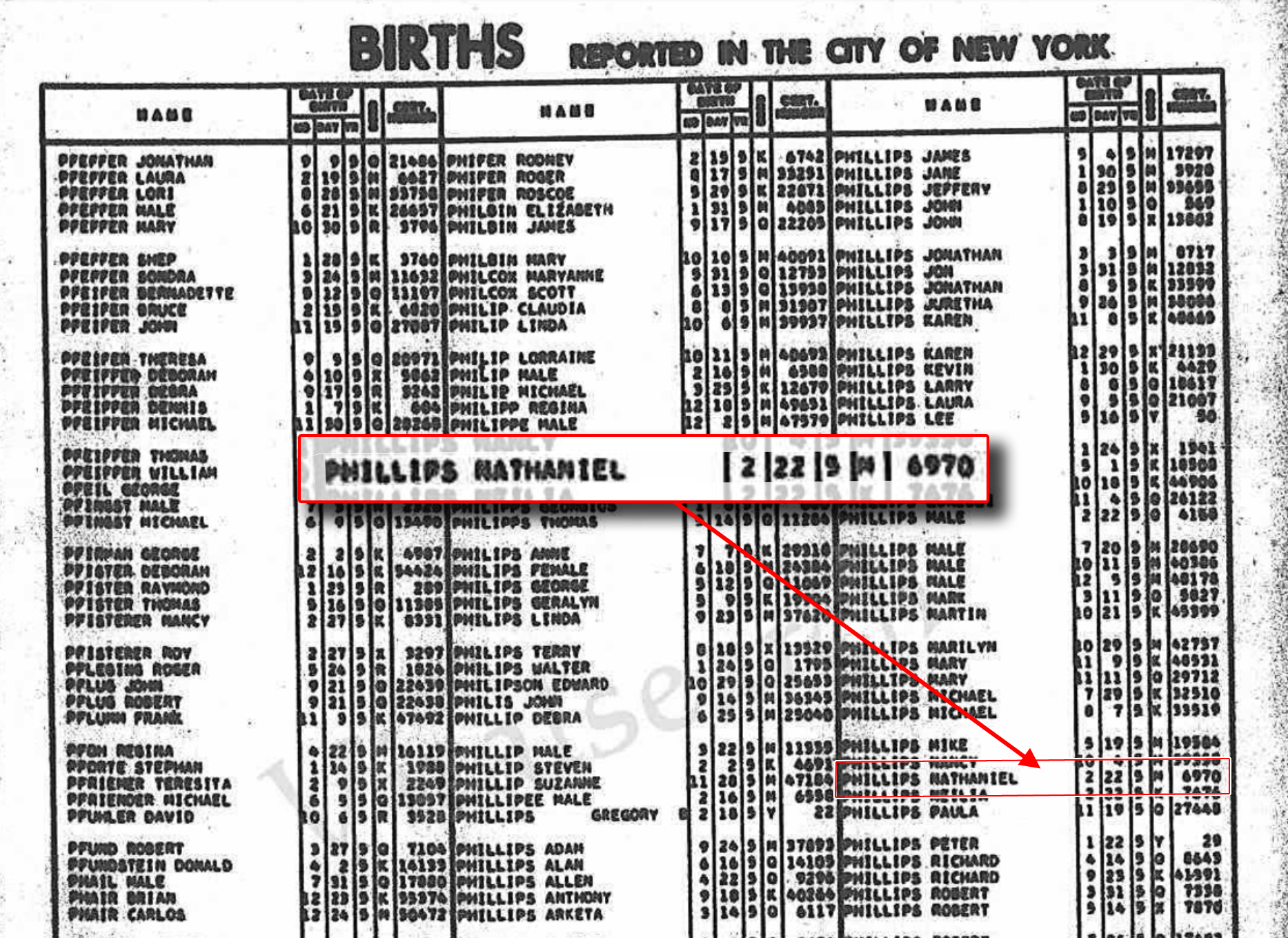 I’ve provided the document above and it would be super safe to say that an individual with the name Nathaniel Phillips was born in NYC on the same day as this individual currently in the news.