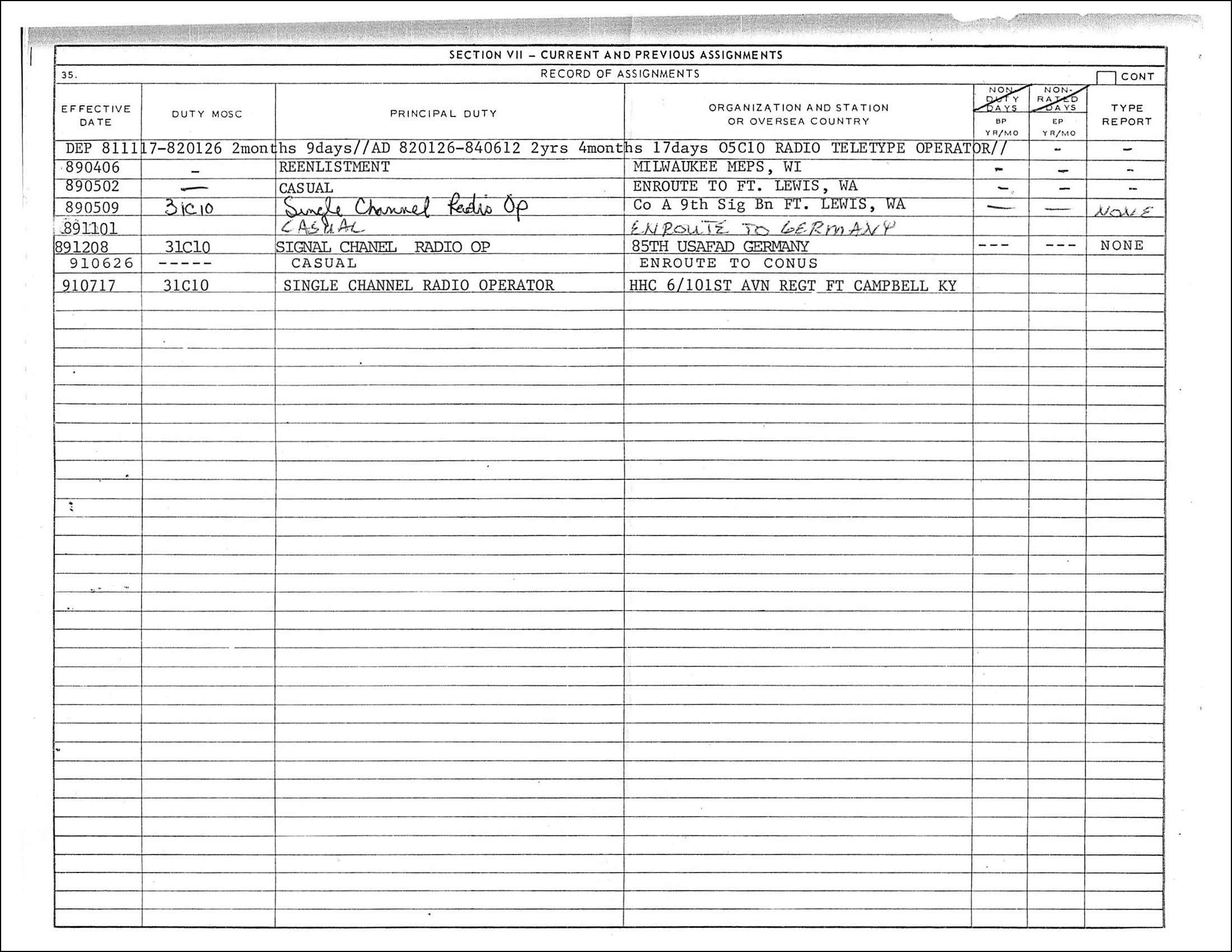 So many questions. Wonder if NPRC had more records on him than what was sent. Or wonder if some of his records could not be disclosed due to personal issues.