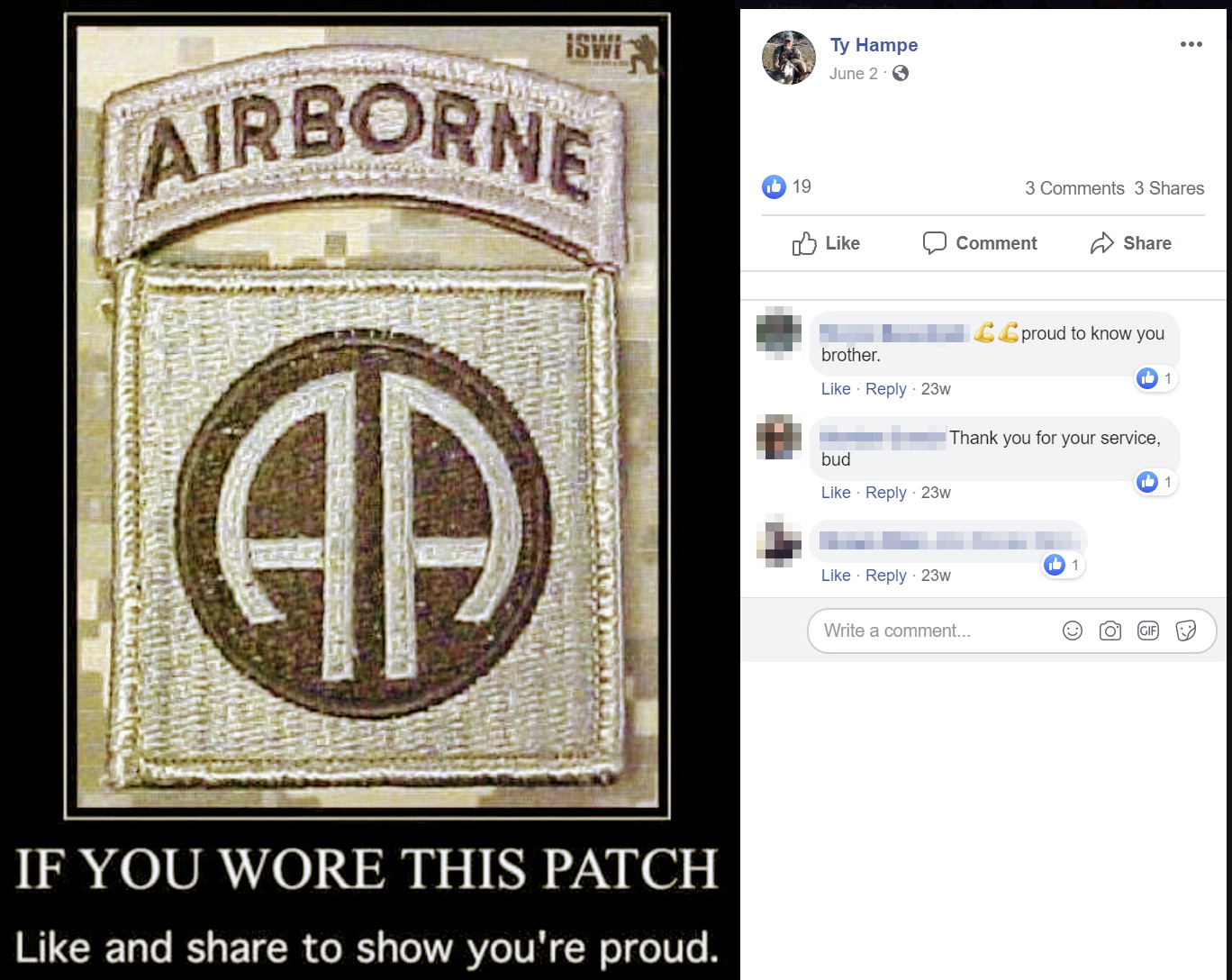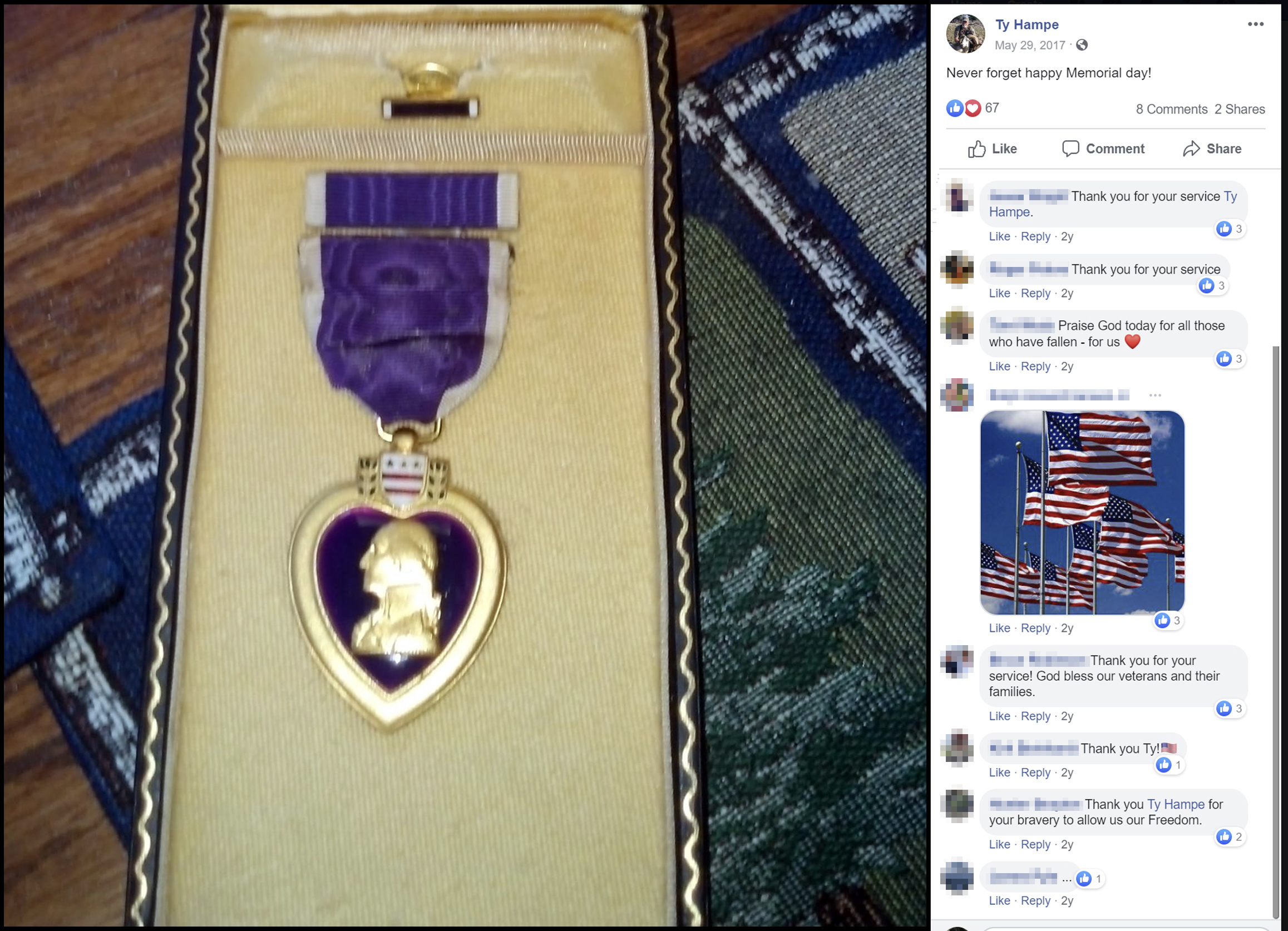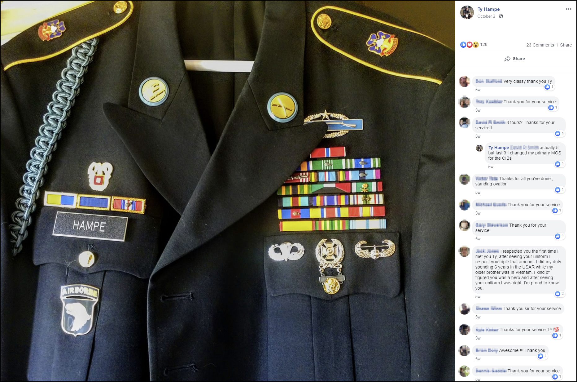 Ty Hampe scrubbed his Facebook profile of all references to the military.