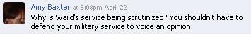 Then Amy Baxter chimes in wondering why Reilly’s service is being questioned;