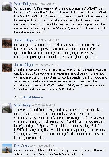 In another conversation Goldsmith had with Chiroux last month, Goldsmith tried to explain to Chiroux that he was proud of his service and proud of the day he first put on a uniform. Chiroux proceeded to shit all over him;
