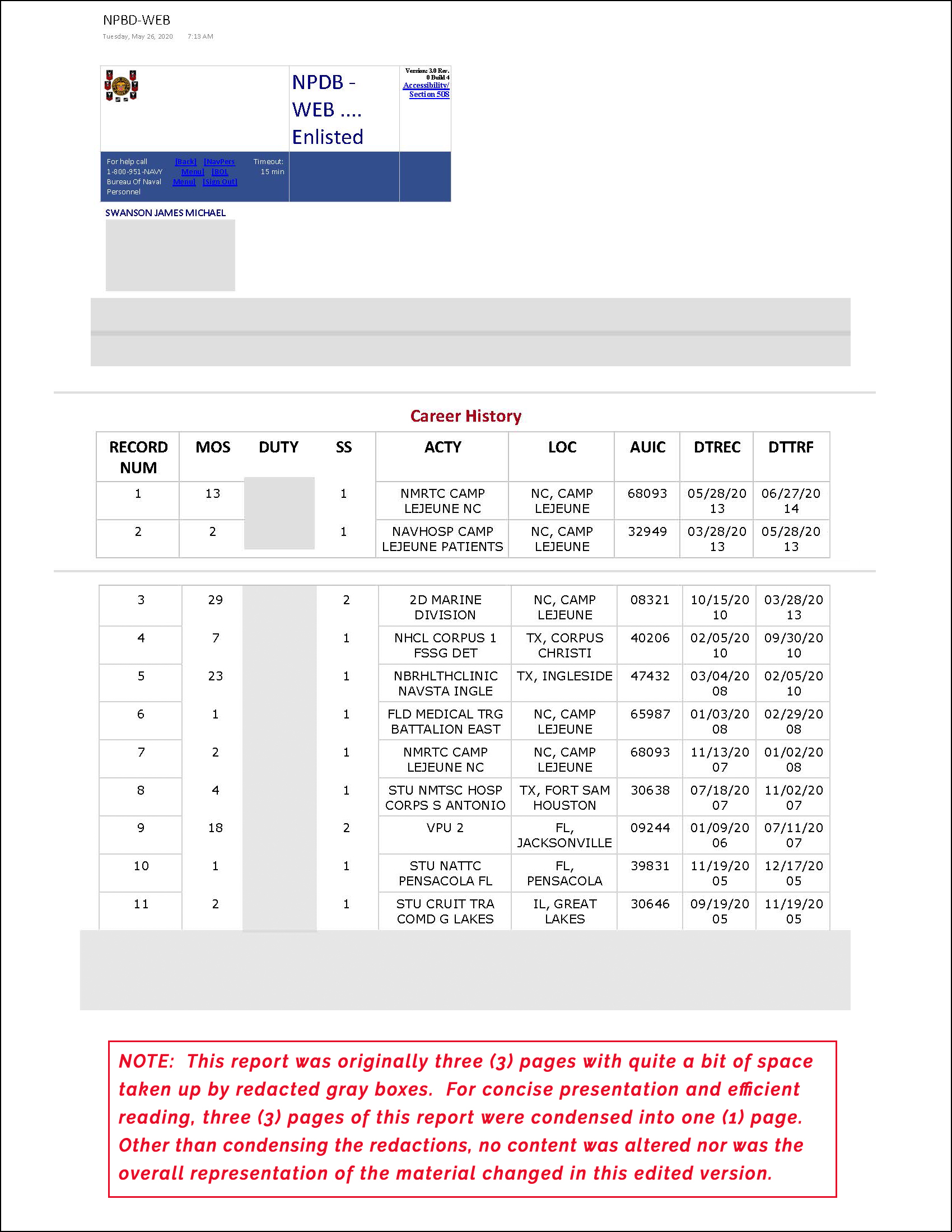 This does not diminish the fact that he lost TWO grades in the last months of service; PO1 down to PO3. That is still plenty of smoke to show his world was burning down before separation.