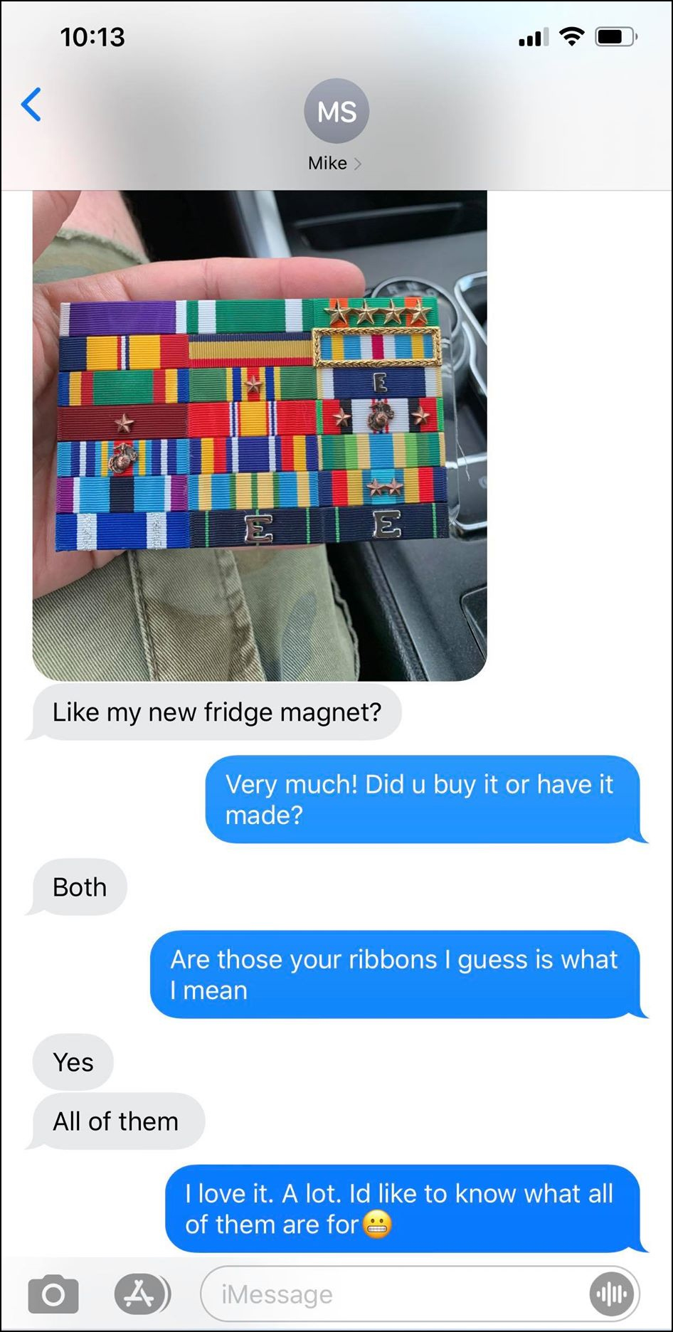 In a private message to someone, he flashed a ribbon rack that showed a Purple Heart medal.