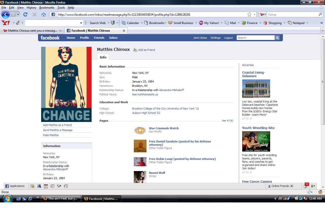 IVAW.org just published Matthis’ manifesto to their site. Does this mean IVAW has joined with Matthis in attacking Sgt. Whitetree, Matthis’ father and his other less specific targets? And how does “I confess” = I accuse? I have been researching this individual, he is lying and abusing his relationship to the IVAW. He is disgracing the IVAW and chasing off “real veterans” of Iraq and Afghanistan. And by they way, didn’t Matthis deploy to the Phillipines with a Marine detachment? – But raped a girl with his “army” buddies?
