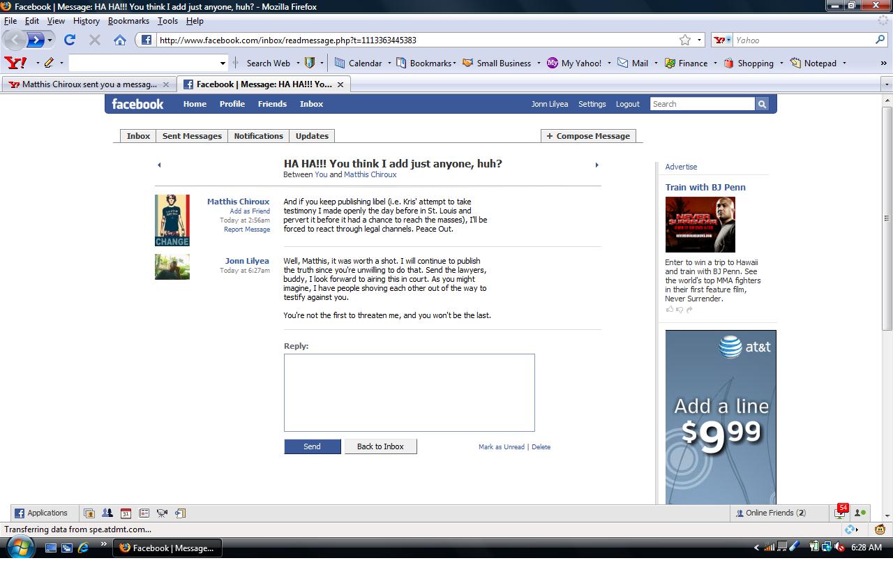 Well, the Milbog “conference” is over, so I guess I’ll show y’all the latest from Matthis. Someone told me that Chiroux doesn’t check who he’s friends with, so I tried to sneak in . But he busted me and took the opportunity to threaten me with legal repercussions;