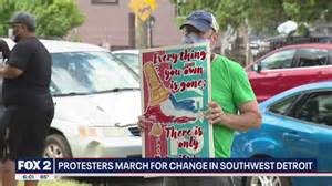 A mostly peaceful protest against systemic racism and police brutality in Southwest Detroit took a dangerous turn late Sunday when two protesters jumped onto the hood of police SUV while others crowded around it.