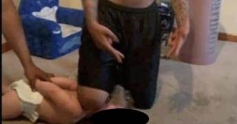 UPDATE: The Clark County Sheriff’s Office in Ohio has launched an investigation over the photo. UPDATE 2: The grandmother of the child from the father’s side, who was not involved, says that the child is safe and with her son. A photograph of a man kneeling on the neck of a white baby while another person holds the diapered child’s arms is stirring up a massive amount of rage on social media.