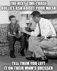 Laughed out loud at the one with the father talking to his son about his mask. Too funny!