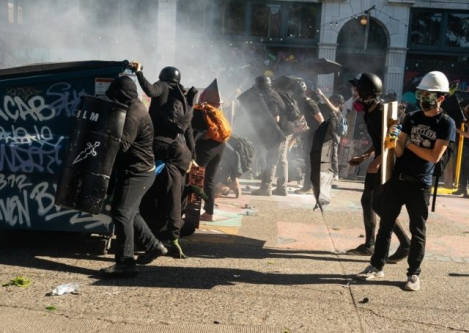 “the right of the people to peacefully assemble” does not translate into the right to destroy other people’s property, set fire to a city, loot businesses, and throw bottles of frozen water at the cops.