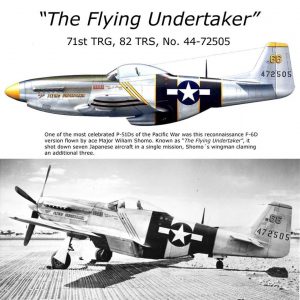 Shomo’s F-6, Snooks 5, was destroyed by another pilot. His following plane was briefly “Snooks 6”, but was soon renamed “The Flying Undertaker” by his ground personnel. What a great name for a man formally trained as a mortician and now earning a living sending enemy fighters to their end. The aircraft received a distinctive paint job as well.