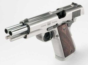 Well, if one big boolit on target is good, two could only be better. Probably no need for back-up shots, either. I am sure Harris, Biden, et al will clamor to have ‘assault .45s’ banned ASAP.
