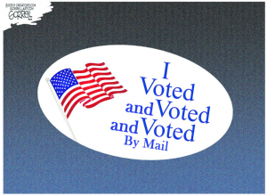 I’ve made mention of the number of “requests for mail in voting applications” I’ve received over the last 4 months. Got 2 more last week. Met with a Compatriot from a county 2 counties over this weekend at the Memorial Service. His is one of those areas that for DECADES voter fraud was a given. True yellow dog demonrat country. It is still on going, openly. Has gotten a tad better than a few years back, but there are still dead people voting and a number of people that live on or near the county and precinct lines that get away with voting several times.