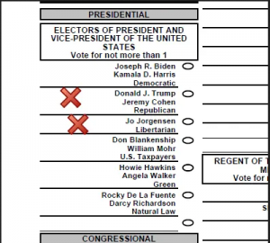 The Michigan Democratic Secretary of State Jocelyn Benson’s office erred on printing who Donald Trump’s running mate in the 2020 presidential election is. Instead of listing the sitting Vice President of the United States Mike Pence, they printed Jeremy Cohen (who is running for VP on Libertarian Jo Jorgenson’s ticket).