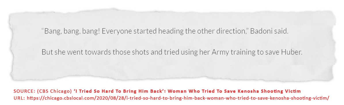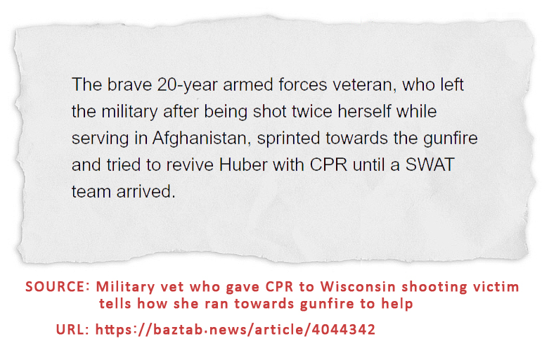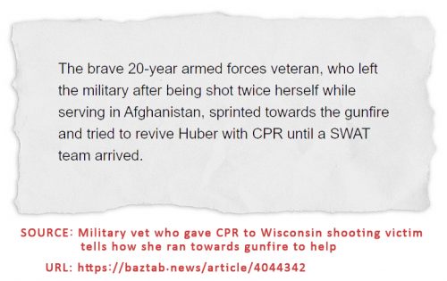 In the article above, there was a claim that she rushed into a hail of bullets and relied on her “Army training” to try and save Huber.