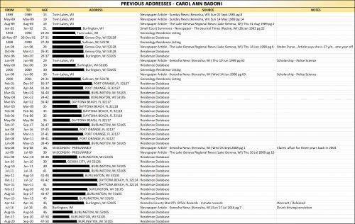The folks at Military Phony sent us their work on Carol Ann Badoni.  Badoni is 50 y/o as of the time of this writing and lives in Burlington, Wisconsin which is about 40 min from Kenosha.  Her AKAs include: Karen Badoni, Carol A. Badoni, Carol Ann Badoni, and Karen A. Badonischultz.