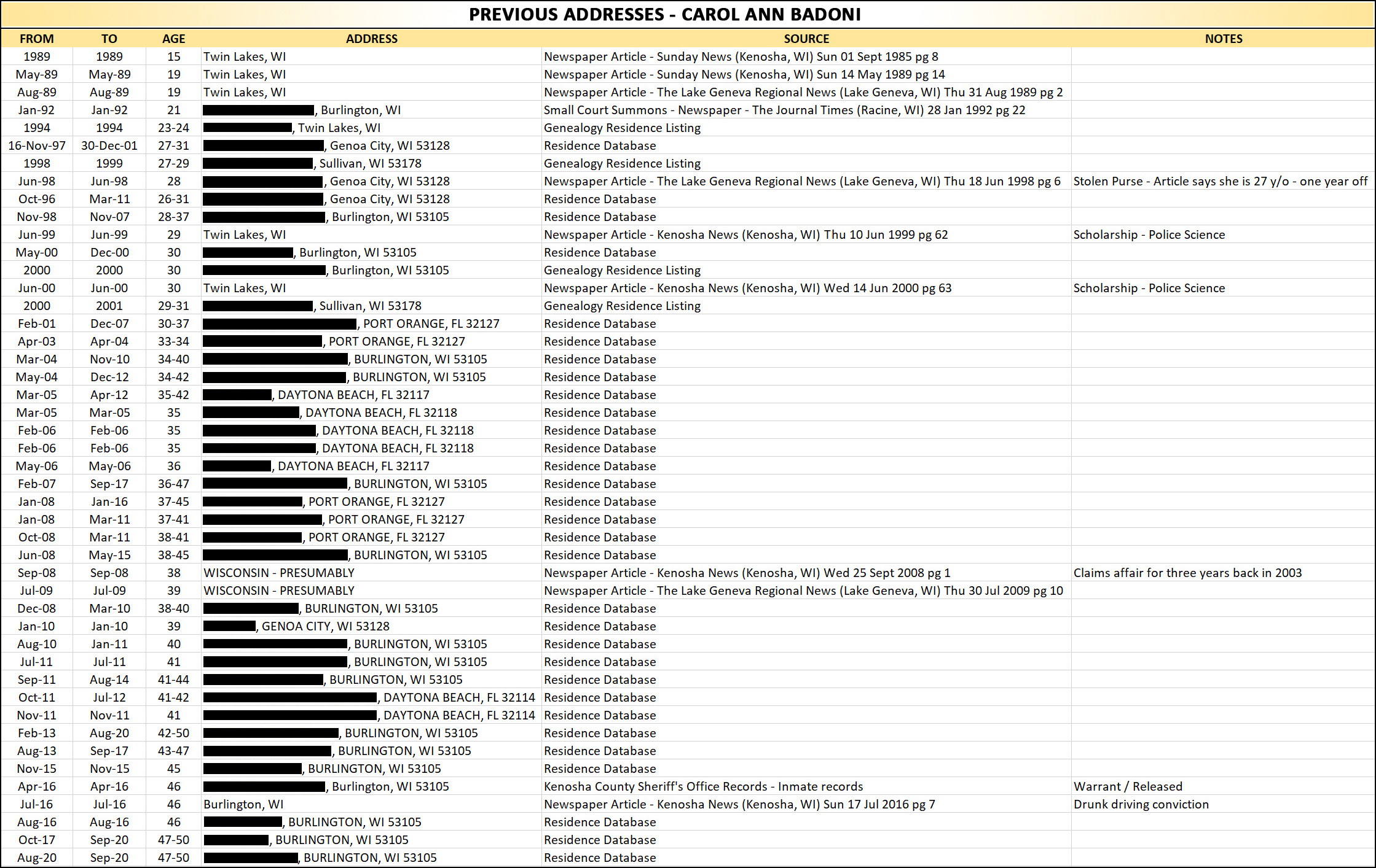Badoni’s address history showed no addresses around military bases.  Only Wisconsin and Florida.