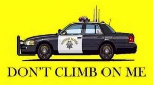 When a CHP patrol car arrived, demonstrators surrounded it. The cruiser attempted to move through the crowd, and as it did, protesters hopped on the hood. The car’s back window was smashed by a skateboard, and the officer behind the wheel accelerate while demonstrators clung to the hood.