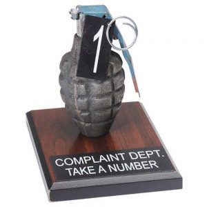 The TAH Grievance Process is well known, and I highly encourage its use in resolving differences. I have even thoughtfully provided, at no small expense, a number system to facilitate the process to ensure all are fairly seen in the order of their respective complaint. Please feel free to take a number- you will be called on in turn, unless of course you have rapidly and loudly departed the area.