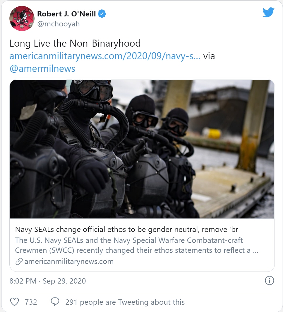 Ex-SEAL Rob O’Neill recently tweeted out “Long Live the Non-Binaryhood”…