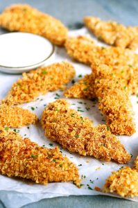 While this recipe is for oven-fried tenders, the three bay coating technique is classic and tenders so prepared can just as easily be pan or deep fried. Chef’s choice. I use the air fryer function on my Ninja and there’s not a dimes worth of difference that I can tell. YMMV.