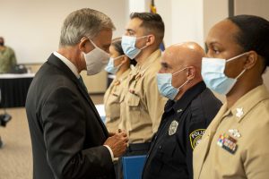 “I am honored to be able to present these awards today,” acting Undersecretary of the Navy Gregory Slavonic said during an Oct. 8 ceremony. Five months ago, these individuals’ rapid, decisive actions, and their courage under fire, ensured no loss of life. This surprise assault could have been deadlier, but they utilized their training and responded swiftly and exceptionally thwarting the nefarious intent by the intruder.”