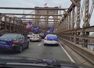 A convoy of hundreds of cars draped with American flags and “Trump 2020” banners rolled slowly through Manhattan and Brooklyn on Sunday afternoon. The caravan traveled from Coney Island to the Trump Tower in Manhattan before heading to a rally in a Brooklyn park.