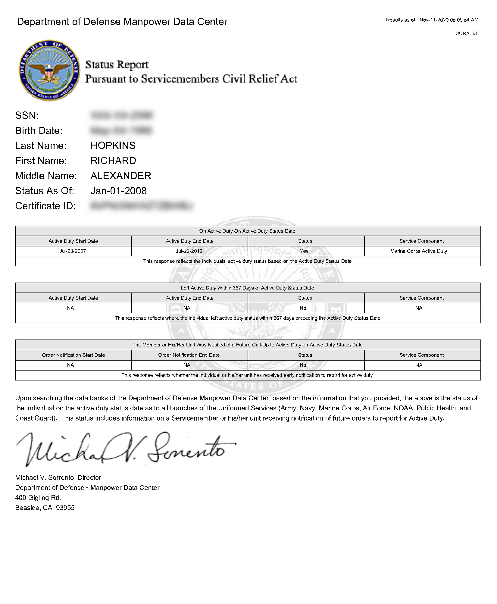 It seems that Richard Hopkins is telling the truth about his Marine Corps service.