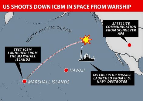 Previous tests to shoot down ICBMs were conducted using ground-based interceptors launched from bases in Alaska and California.