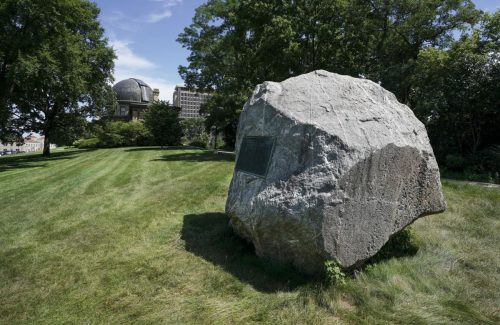 The 70-ton boulder is officially known as Chamberlin Rock in honor of Thomas Crowder Chamberlin, a geologist and former university president. But the rock was referred to at least once after it was dug out of the hill as a “niggerhead,” a commonly used expression in the 1920s to describe any large dark rock.