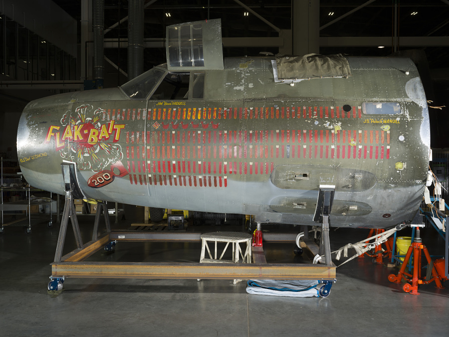 After the war, Flak-Bait was allowed to rest. On March 18, 1946, Major John Egan and Captain Norman Schloesser flew Flak-Bait to an air depot in Bavaria. There she was disassembled, crated, and shipped by year’s end to the US. Flak-Bait was one of the American aircraft selected by General of the Army Henry “Hap” Arnold to represent noteworthy artifacts of the war.