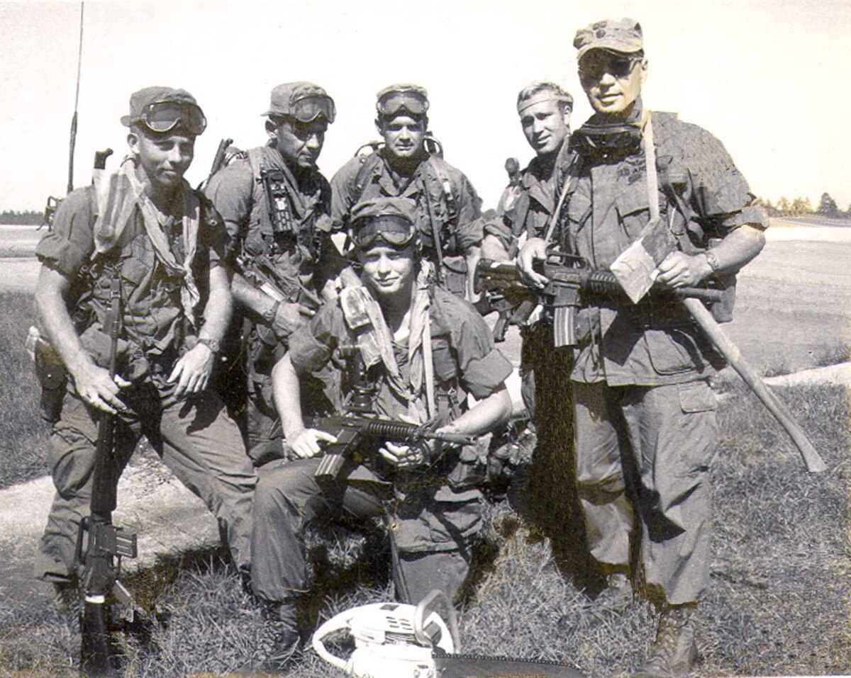 I can’t vouch for the head, but the body of the LTC in the above photo is likely LTC Joseph Cataldo, a former SF medic, he was also an Army Flight Surgeon, as he is wearing flight surgeon’s wings below his CMB. He was recruited by Col. Simons to act as chief medic and physician for the operation, per Skyjumper’s linked article below.