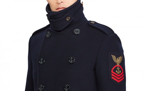 The noticeable addition of “naval rank insignia enhances the nautical heritage of this classic peacoat,” Ralph Lauren’s website claims. Furthermore, the highest collar in the history of clothing is guaranteed to protect fashionable seafarers from both strong winds and wave after wave of insults by folks who have actually seen open water.