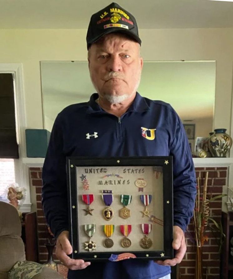 Bronze Star with V device, 2 Purple Hearts, Commendation Medal, Good Conduct Medal, National Defense Service Medal, Combat Action Ribbon, and Vietnam been there medals. A fantastic accomplishment being in Vietnam one month and 18 months in the Marines. No need to lie about anything. This guy has brought dishonor on all his accomplishments to the point that nobody will believe anything he says because of his lies.