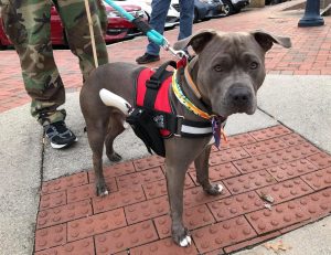 Odie the Pit Bull and his two Kimel revolvers participates with his master during the Second Amendment Freedom Walk held in Hopewell, Virginia. Who’s a good boy?