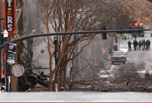 Nashville authorities report what appears to be a vehicle based explosion that occurred early Christmas morning. The explosion damaged buildings, vehicles, and other property in the immediate area. Additionally, residents felt the explosion from where they were at the time of the explosion. One resident described the windows as having exploded “into the next room”.