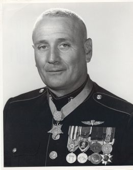 USMC’s most decorated officer – Colonel Kenneth L. Reusser earned a Navy Cross as a naval aviator in the Pacific Theater during WWII. He earned another Navy Cross and was the first Marine decorated for gallantry in Korea. His service continued to Vietnam where his helicopter was shot down, requiring extensive skin grafts. In addition to his two Navy Crosses, Colonel Reusser has two Distinguished Flying Crosses, a Bronze Star Medal w/ “V”, five Purple Hearts, and 18 Air Medals.
