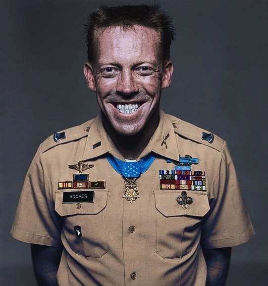Navy most decorated officer – Vice Admiral James Stockdale is the Navy’s top scoring officer of the war. He missed World War II since he was attending the US Naval Academy, then missed Korea because he was receiving aviation training and then test pilot training. In the early days of the war, flying over Vietnam in 1965, he was shot down. As a commander he was the highest ranking naval officer held in North Vietnam as a POW. For nearly eight years he was subject to daily torture and severe isolation (after repeatedly fighting against his captors). For his leadership, courage, and perseverance as a POW he was awarded the Medal of Honor, two Navy Distinguished Service Medals, four Silver Stars, a Legion of Merit w/ “V”, two Distinguished Flying Crosses (for action before becoming a prisoner), two Bronze Star Medals w/ “V”, two Purple Hearts, and 10 Air Medals.
