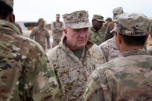 Marine Corps Gen. Kenneth McKenzie, the commander of U.S. Central Command, center, will have to figure out how to fold Israel into his mix. (Staff Sgt. Alexandria Brun/Air Force)