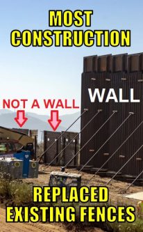 More than 450 miles have been installed since former President Donald Trump took office in January 2017. Seven hundred and thirty-eight miles have been funded for $15.5 billion, including $10 billion diverted from the Treasury and Pentagon. The 450 miles installed to date are in place of old fencing and in new areas. Only approximately one-third of the 738 miles will go in previously unsecured areas of the border, though all the new barriers are far superior to the flimsy, short fences that they replaced.