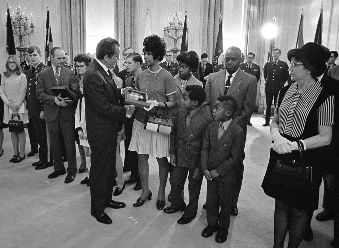 Bryant left behind a wife, two sons, a daughter, and his father (pictured above with Nixon). One of those boys, Gregory Bryant, is who donated his father’s medals this week.
