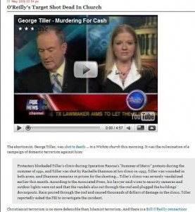 You’ve probably already heard that an abortionist was murdered in his church this morning in Wichita, KA. Before the suspect in the shooting was even caught, Andrew Sullivan was already accusing the Right and Bill O’Reilly of complicity in the murder.