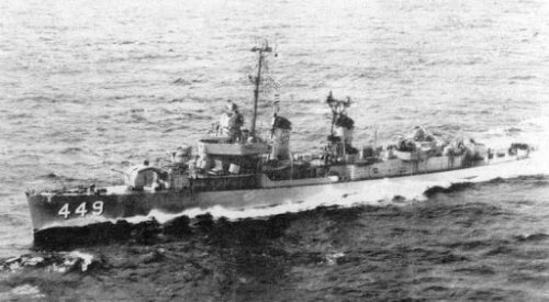 After Korea, the ship took part in nuclear testing operations at Eniwetok and Johnston Island. When the Vietnam War intensified, the veteran destroyer was part of the screening force for the carrier USS Kitty Hawk (CVA-63) in Vietnam coastal waters from 1964 to 1965.