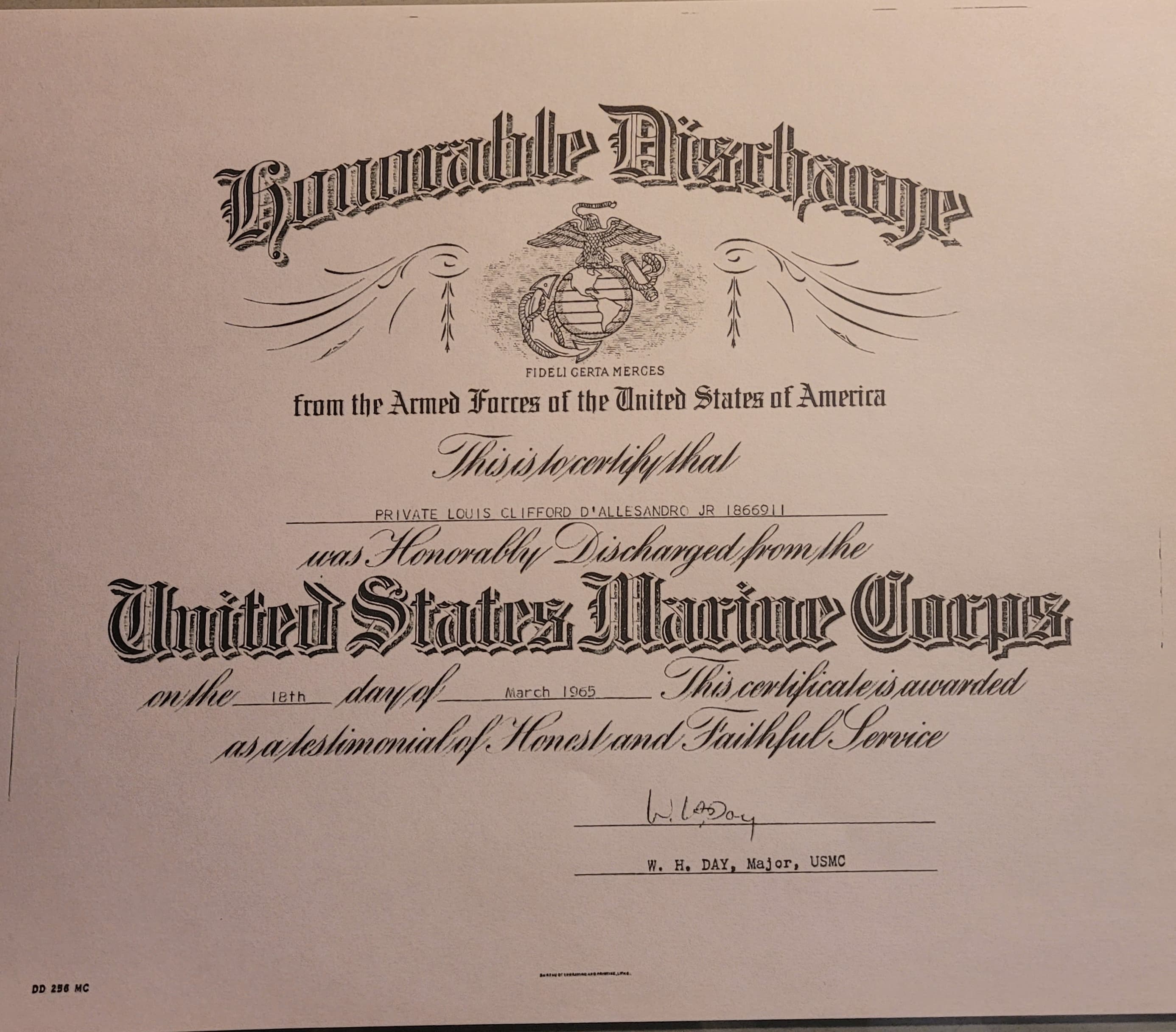 We reached out to Private D’Allesandro through official channels asking him to clarify how he justifies using the label “veteran” or “Retired – U.S. Marine Corps.” We initially reached out , waited a week, then reached out again. We have not gotten a response. We would have liked to have him comment on this issue. PUBLIC CLAIMS We were able to put together a few claims that appeared in the press. There’s always the likelihood of other claims having been made in speeches or in private conversations but we will leave that for others to confirm. When a Public Official has many claims being published about their military service it is incumbent upon them to clarify that service. All we seem to have from Private D’Alesandro is a few weeks of summer camp. We wonder if Private D’Alesandro didn’t just take the money from the Corps to pay for some of his schooling and then drop out before actually earning the title “United States Marine” and going on to serve his country. Ignoring requests to clear up the matter does not help. It is not in the nature of most real Marines to duck and hide when their service is questioned. Little Louie here should sound off like he has a pair…As a side note, there is a Louis Walter D’Alesandro that was in the Marine Corps for over 25 years, including 1958. There is only one “L” in his last name, but there were occasions that it was misspelled with two “L”s. Louis Walter and Louis Clifford are two different people – no relationship we could find – and their Service Numbers are different.Louis Walter D’Alesandro – 048636 (<– Service Number)