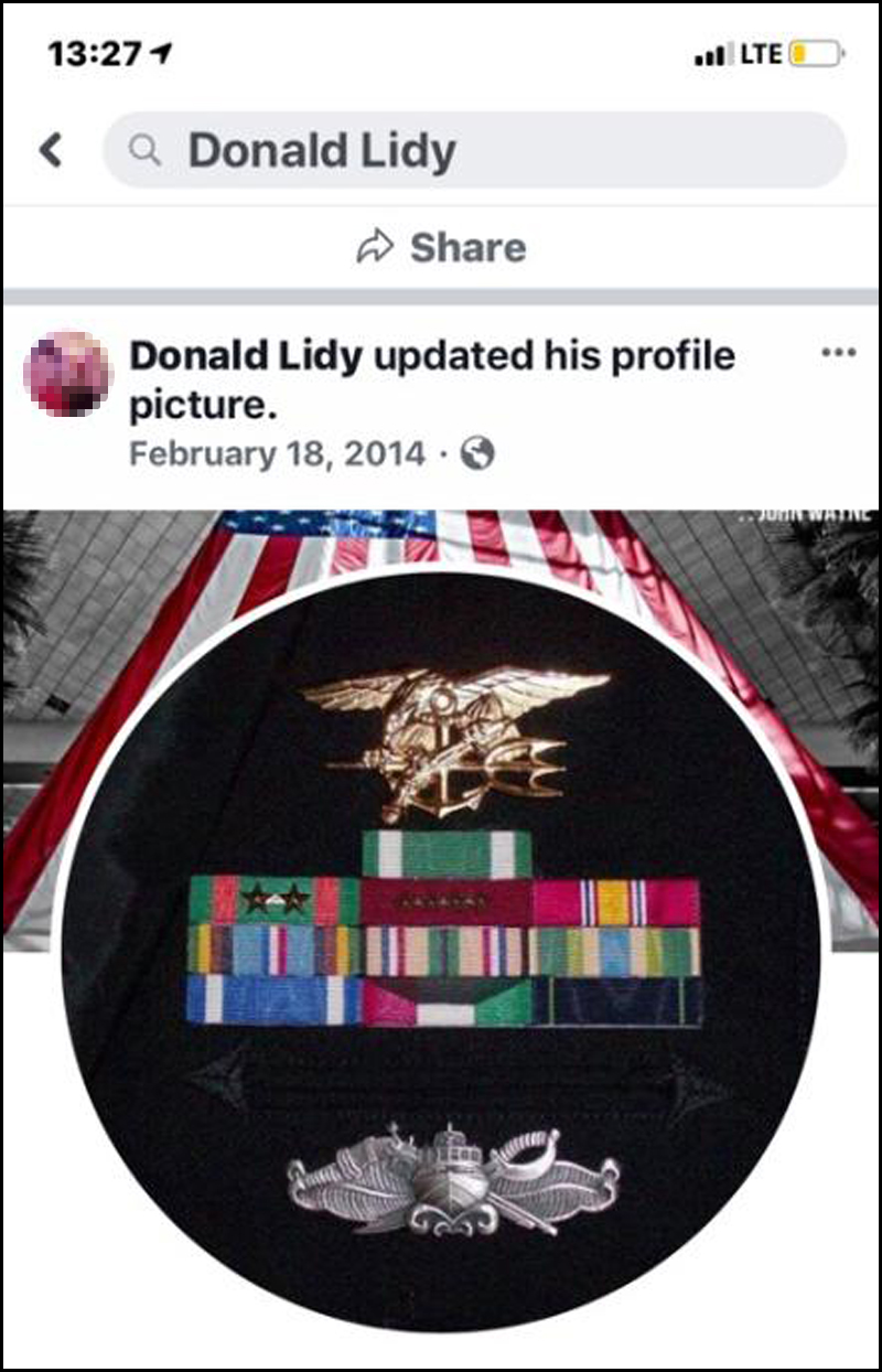 Lidy often posts the SEAL Trident on his Facebook page, implying he was a Navy SEAL.