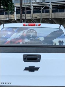 As you can see from the above photo, Lidy is wearing one of those ball caps that no self-respecting SEAL would be caught wearing. The Trident logo is so big it is reminiscent of the ‘facehugger’ from the Aliens movies.