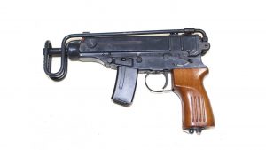 Semi auto Skorpions available from CZ-US, I believe in 9×19.