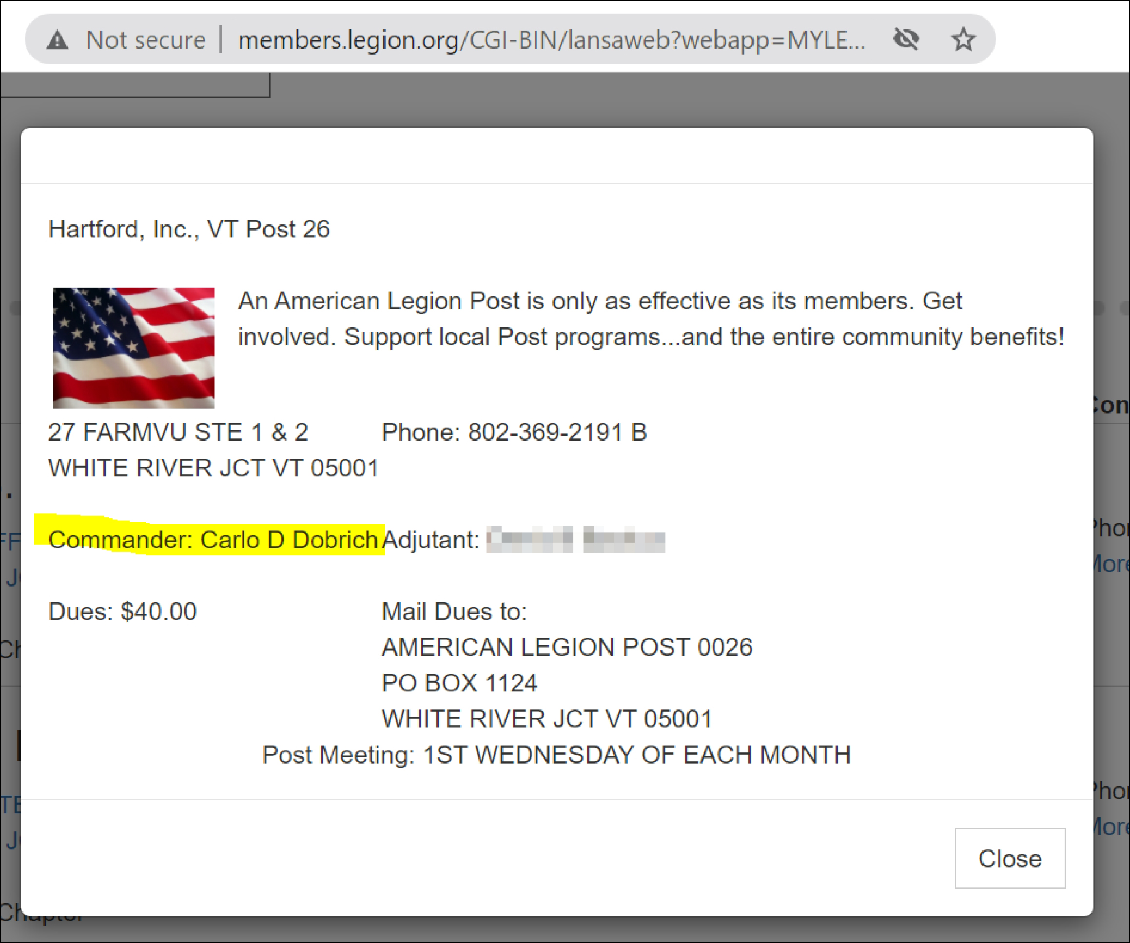 That post is just up the road from my AO about a 30 min drive and about a mile from the largest VA hospital in northern New England.