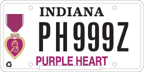 To get a Purple Heard license plate in Indiana, you have to fill out BMV form 32584 which is three forms in one as the form is used to apply for a Disabled Veteran plate, a POW plate and a Purple Heart plate. Same form, just check the appropriate box and send / present documentation.